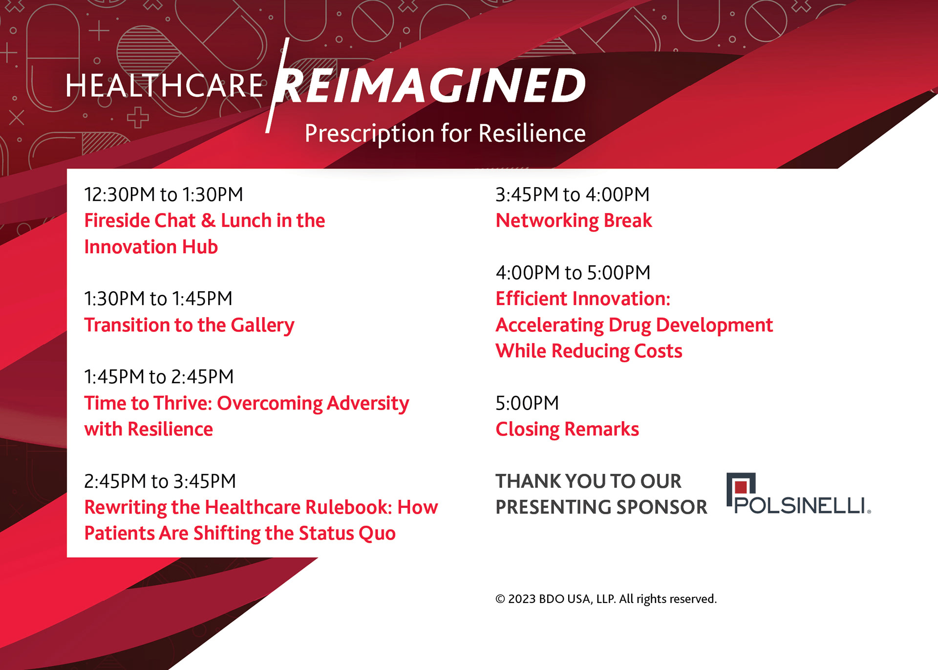 Assets created for the 2023 JPM Healthcare Conference. Pictured below are designs for a back wall decal, column-wrap decal , and the postcard.